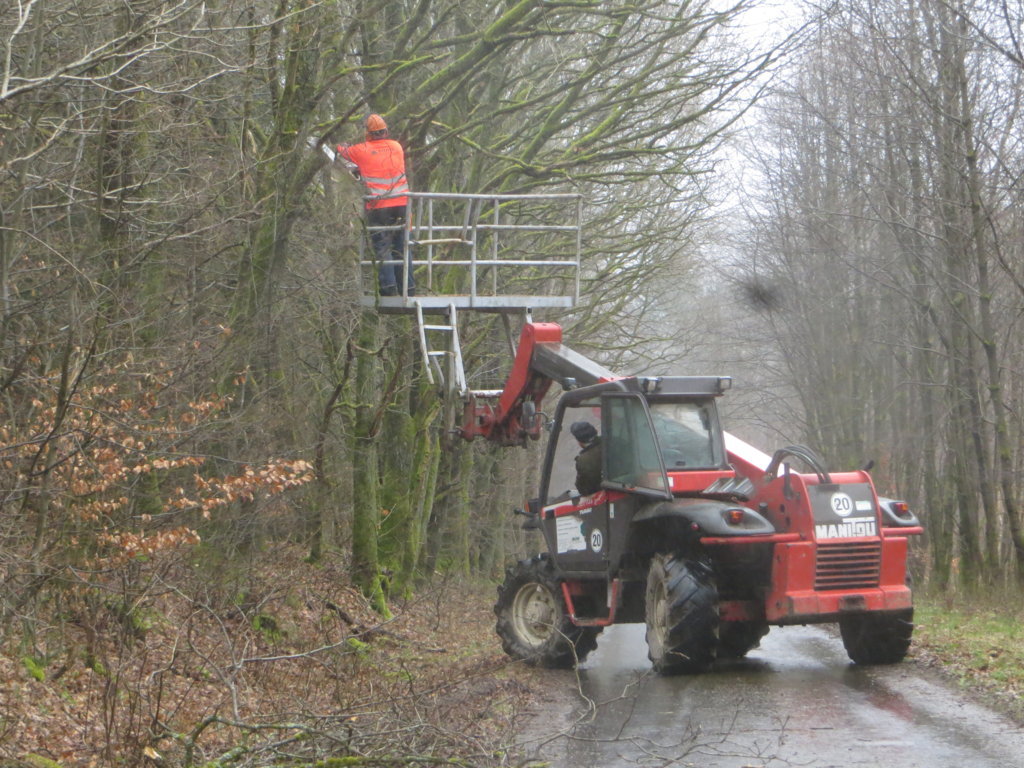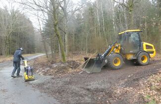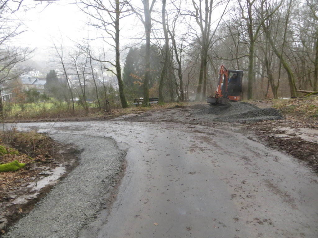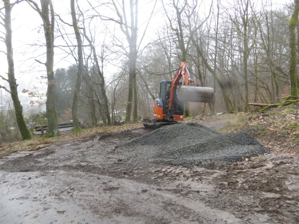 Große Betriebsamkeit herrschte vergangene Woche auf den beiden für die Umleitung vorgesehenen Wirtschaftswegen zwischen Limbach und Malberg bzw. Kundert. Verbandsgemeindewerke und die Firma Holzeinschlag Muhr waren zum Teil zeitgleich mit schwerem Gerät vor Ort aktiv.