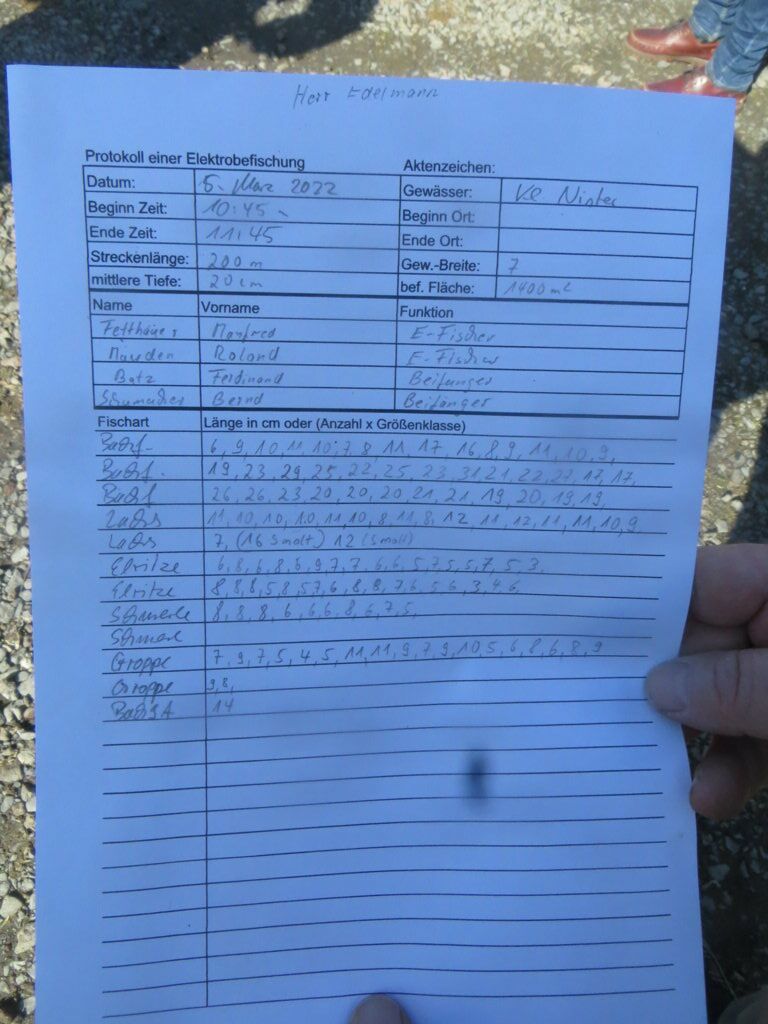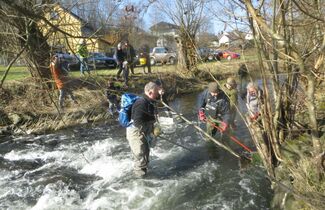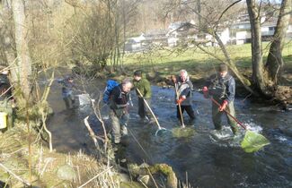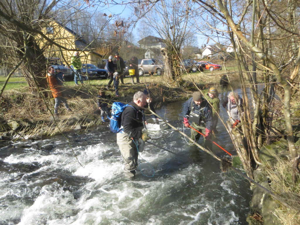 Eine Auflage der Unteren Wasserbehörde für die wasserrechtliche Erlaubnis der Brückensanierung war die Feststellung des Fischbestandes der Kleinen Nister mittels Elektrobefischung. Am vergangenen Samstagvormittag rückten daher von der ARGE Nister Manfred Fetthauer mit Team sowie Herr Mauden von der Oberen Fischereibehörde (SGD Nord) mit entsprechendem Equipment an.