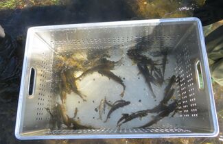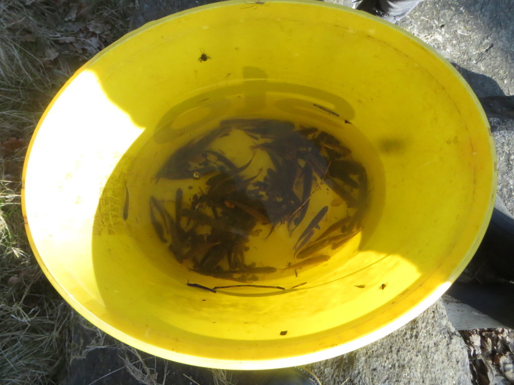 Alle Fische wurden abschließend wieder ins kalte Nass entlassen. Eine ausführliche Auswertung u.a. mit Projektbeschreibung und allen gefangenen Arten und Größen findest in dem Beitrag zur Brückensanierung auf der DORFpinnwand! Unbedingt empfohlen sei Dir auch ein Besuch der ARGE Nister unter www.argenister.de.
