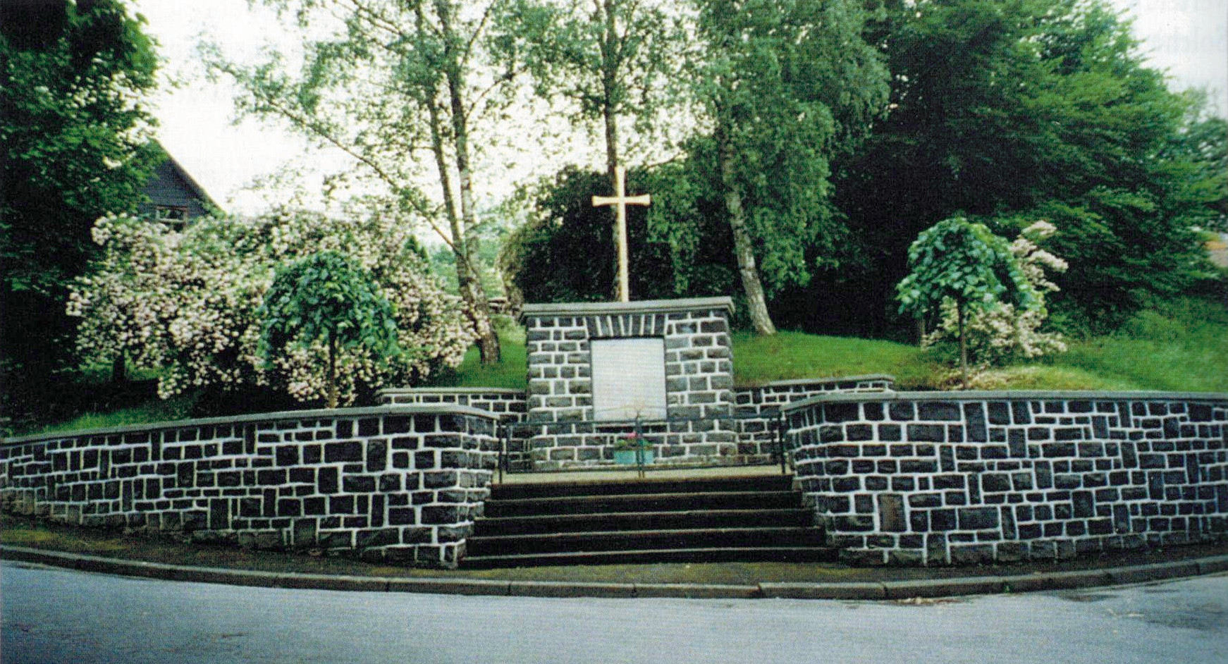 Am 21. November 1954 wurde das Ehrenmal feierlich von Pfarrern beider Konfessionen eingeweiht. Auf der Steintafel sind die Gefallenen und Vermissten der beiden Weltkriege 1914 - 1918 und 1939 - 1945 aufgeführt. Im Jahr 2020 entschied sich der Gemeinderat gegen Abriss und Errichtung einer neuen Gedenktafel auf dem Friedhof. So bleibt das Denkmal weiterhin mitten im alten Ortskern als Ort der Mahnung und Erinnerung sichtbar. Eine Restaurierung ist geplant.