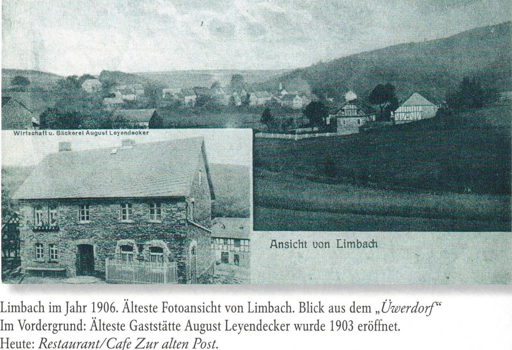 Die Ansicht oben gilt als älteste Fotoansicht von Limbach aus dem Jahr 1906. Sie zeigt den Blick aus dem "Üwerdorf".