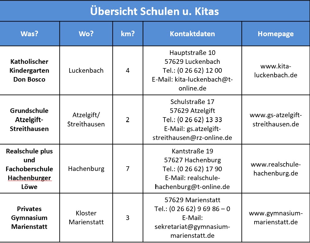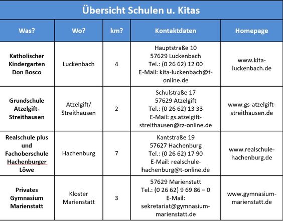 Die alte Grundschule in Luckenbach wurde in einen Kindergarten umgewandelt, der unter der Trägerschaft der Katholischen Kirche ebenfalls von den oben genannten vier Gemeinden gemeinsam genutzt wird.