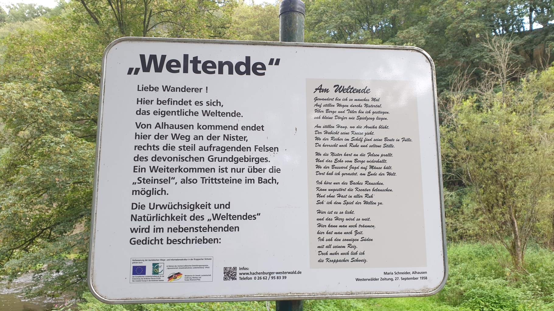 Nach wie vor ist sie eine wohltuend stille und ursprüngliche Wanderregion im Herzen Deutschlands und des Westerwaldes. Urige Dörfer, fantastische Ausblicke, wildromantische Pfade und Bachquerungen über Trittsteine oder eine Hängeseilbrücke machen jede Wanderung hier zu einem echten Erlebnis. Erst recht, wenn man ans „Deutsche Eck“, den Zusammenfluss von Großer und Kleiner Nister oder gar bis ans „Weltende“ marschiert…