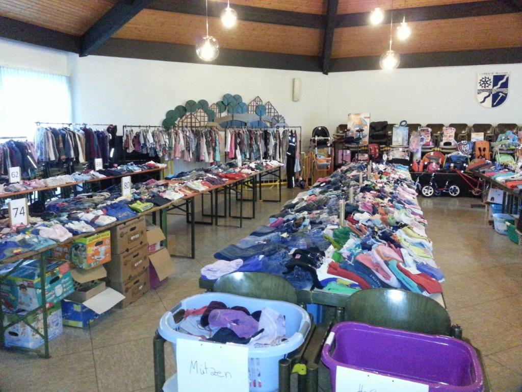 Verkauft werden darf alles “rund ums Kind” - von Kleidung über Spielzeug, Bücher bis zu “Hardware” wie Kinderwagen. Zusätzlich gibt es selbst gebackenen Kuchen zu kaufen.