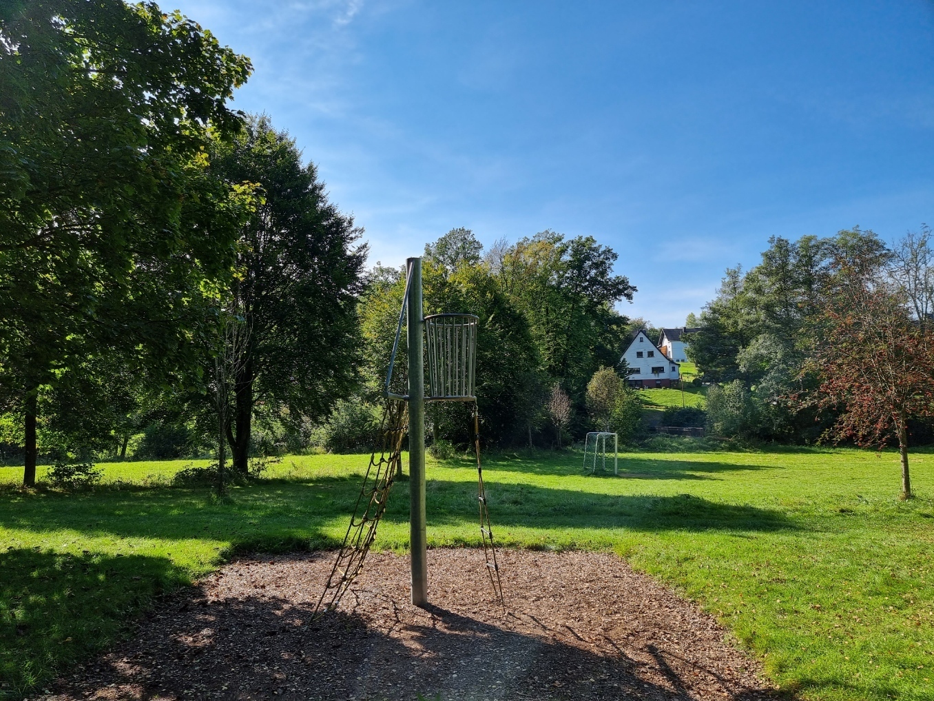 Der Bolzplatz gleich gegenüber lädt Kicker jeden Alters zu einem Match.