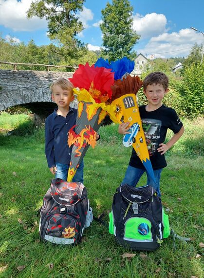 Unsere zwei Lömbijer i-Dötzchen mit ihren schönen selbst gebastelten Schultüten, die sicher mit allerlei Leckerem und Nützlichem gefüllt waren, sind vergangene Woche gut gelaunt zum ersten Schultag angetreten.