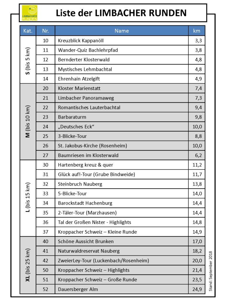 Weitere ausführliche Informationen wie z. B. die Touren-Steckbriefe gibt es direkt bei den LIMBACHER RUNDEN.