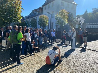 Sie ist sicher die bisher prominenteste Teilnehmerin auf einer Wanderung des KuV: Bundesumweltministerin Steffi Lemke. Wie kam es dazu? Bereits vor Wochen fragte die Touristinformation Hachenburg beim KuV an, ob er für den Betriebsausflug des Bonner Bundesumweltministeriums, der in den Hachenburger Westerwald führen sollte, eine geführte Wanderung anbieten könnte. Konnte er! Neben der Wanderung standen weitere attraktive Aktivitäten zur Wahl. Umso erfreuter war der KuV, dass unter den rund 50 Teilnehmern, die Ende September bei bestem Wanderwetter auf dem Alten Markt Richtung Limbach starteten auch die Ministerin und ein Staatssekretär waren