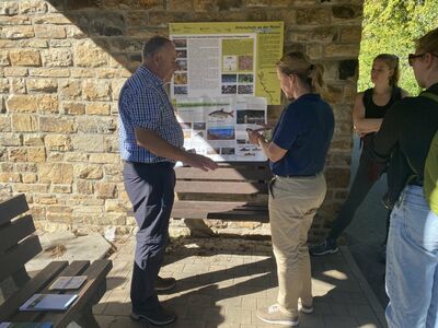 Auf naturnahen Pfaden ging es über die Grube Assberg hinunter ins Tal der Kleinen Nister und auf dem Heunigshöhlenpfad nach Limbach, für das natürlich auch noch ordentlich geworben wurde.