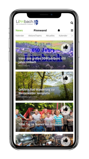 Diese Lücke hat bislang unsere DORFeigene WhatsApp-Gruppe "Limbach aktuell" geschlossen, die derzeit von mehr als 130 Teilnehmern genutzt wird. Mit Einführung der Limbacher DORF-App steht nun eine weitere Möglichkeit der digitalen Kommunikation zur Verfügung.