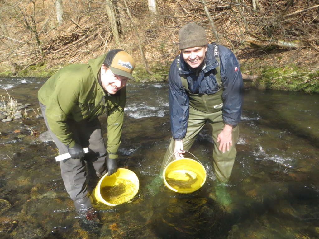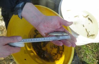 Alle Fische wurden abschließend wieder ins kalte Nass entlassen. Eine ausführliche Auswertung u.a. mit Projektbeschreibung und allen gefangenen Arten und Größen findest in dem Beitrag zur Brückensanierung auf der DORFpinnwand! Unbedingt empfohlen sei Dir auch ein Besuch der ARGE Nister unter www.argenister.de.