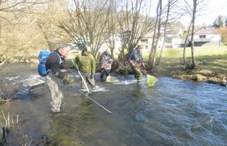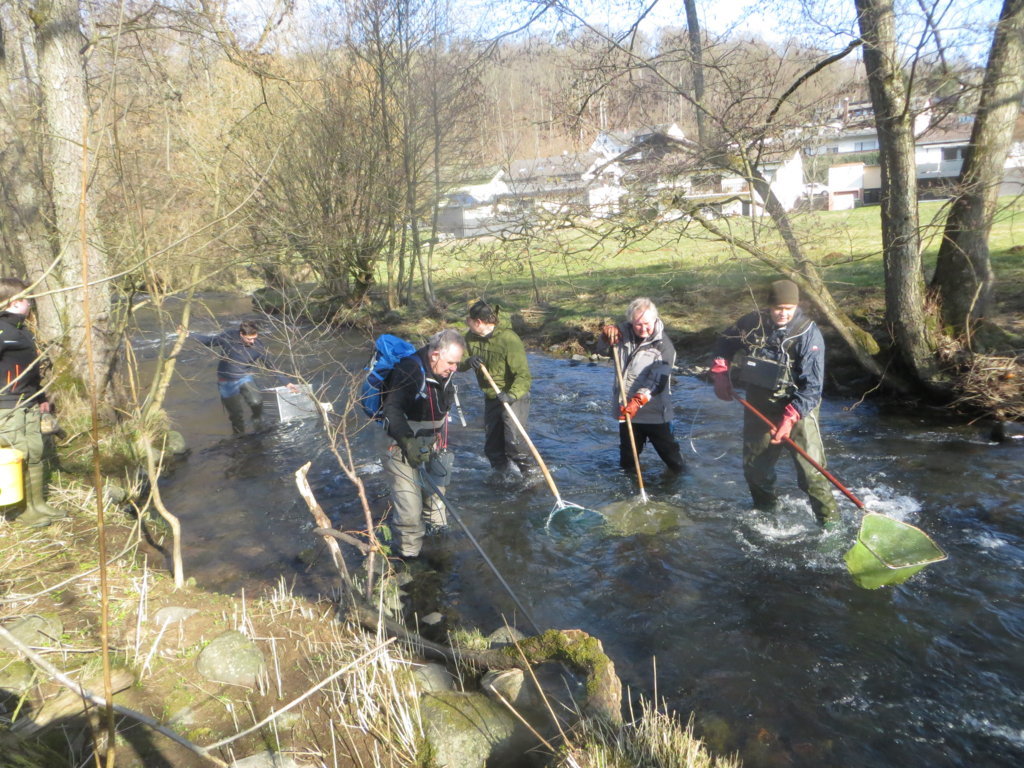 Eine Auflage der Unteren Wasserbehörde für die wasserrechtliche Erlaubnis der Brückensanierung war die Feststellung des Fischbestandes der Kleinen Nister mittels Elektrobefischung. Am vergangenen Samstagvormittag rückten daher von der ARGE Nister Manfred Fetthauer mit Team sowie Herr Mauden von der Oberen Fischereibehörde (SGD Nord) mit entsprechendem Equipment an.