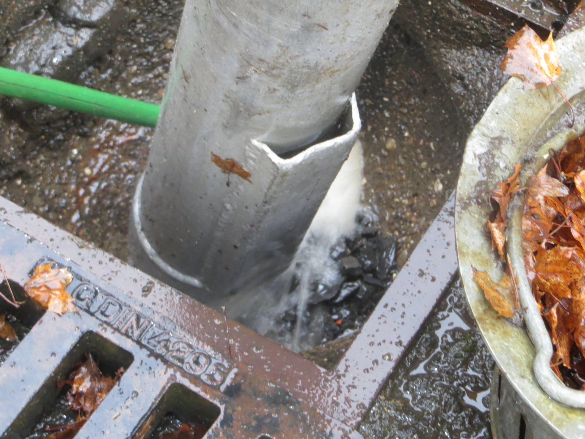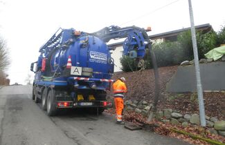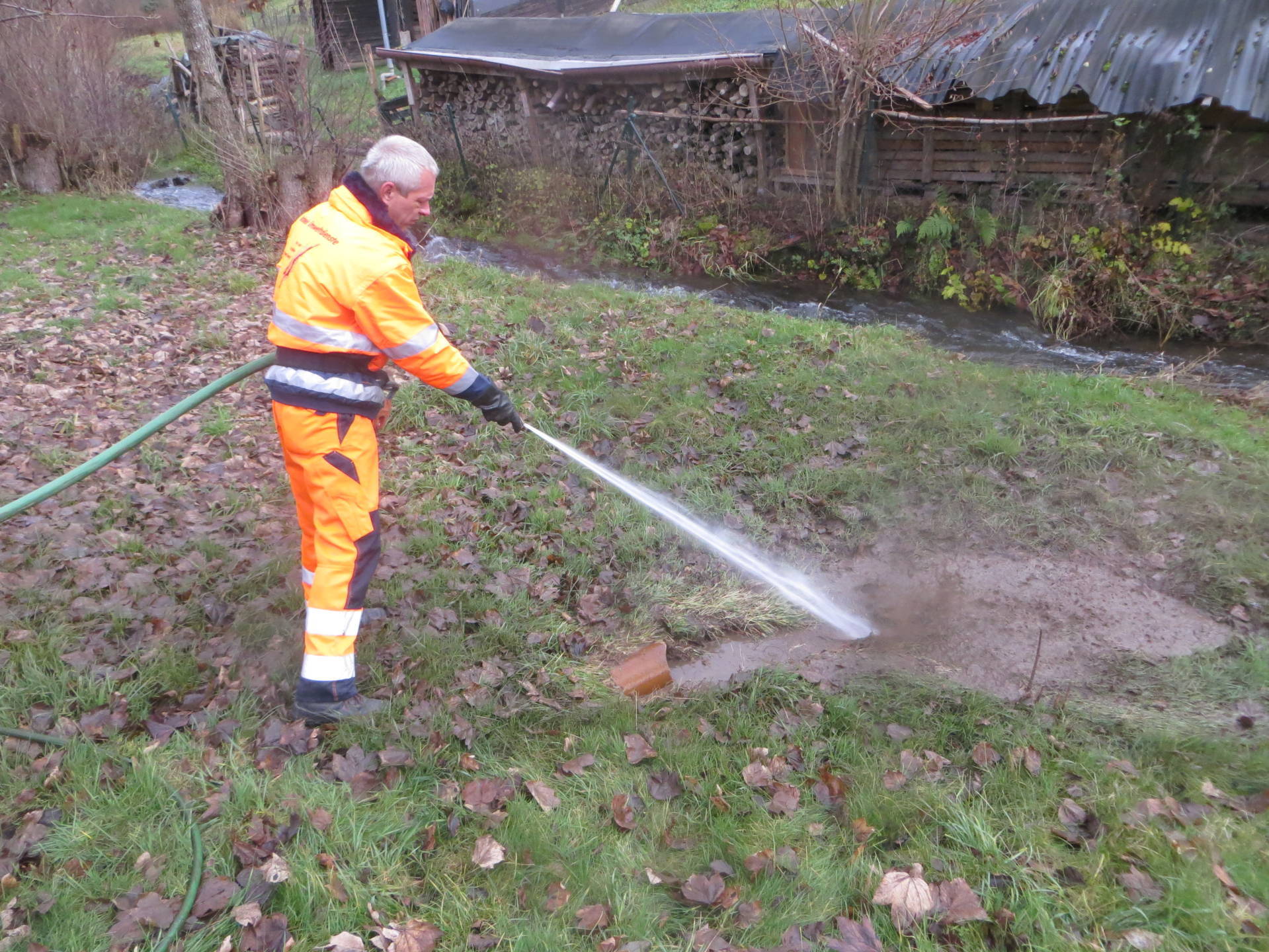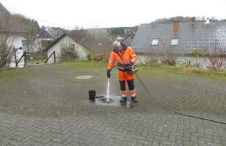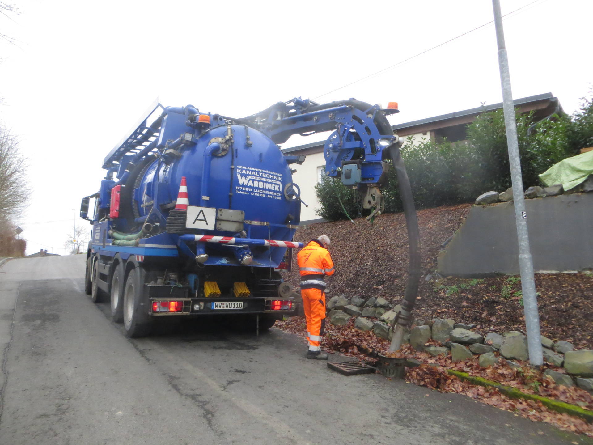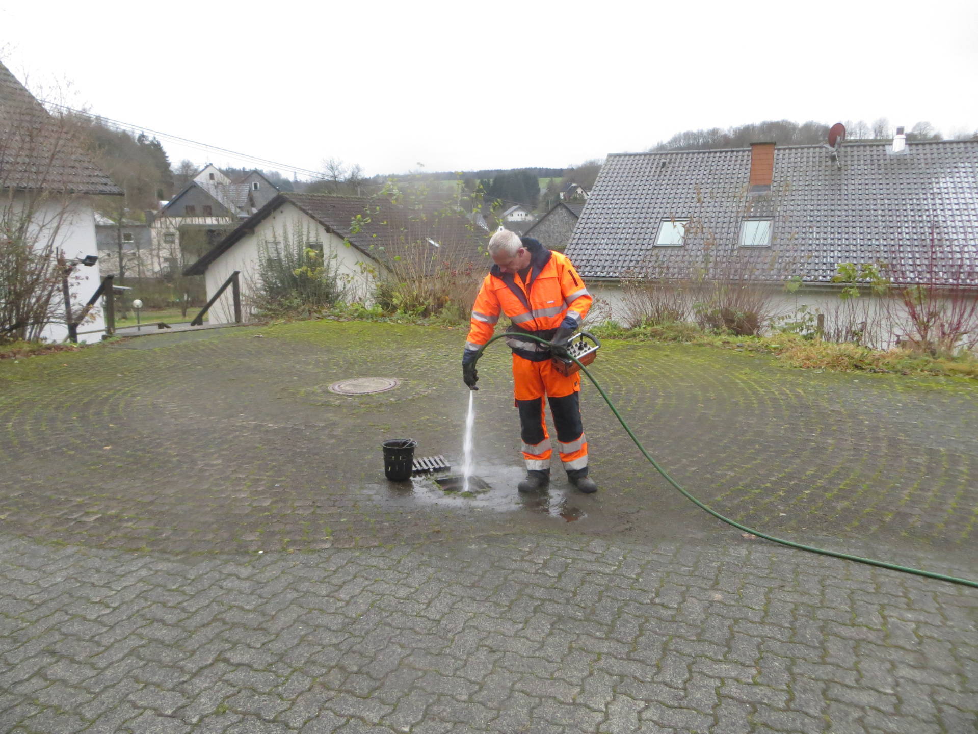 Beim Leeren der Regeneinlaufschächte war Ratsmitgliedern aufgefallen, dass die Abflüsse zum Teil so verstopft waren, dass sie von Hand nicht mehr frei zu bekommen waren. Daher kamen dieser Tage Profis in Gestalt der Luckenbacher Firma Warbinek Umweltdienste mit „großem Geschütz“ vorgefahren.