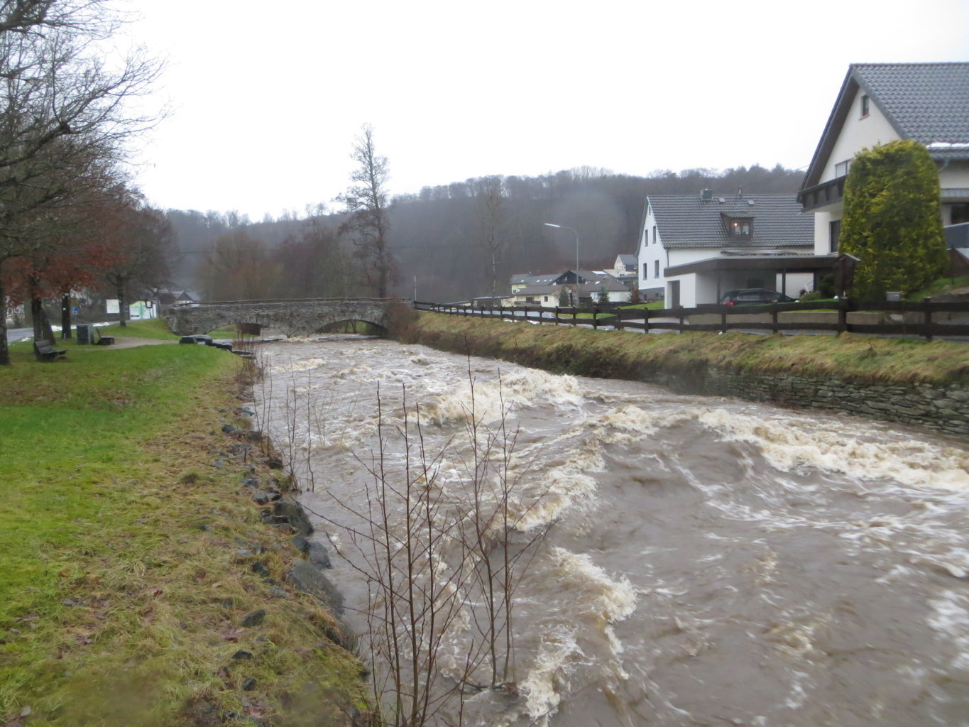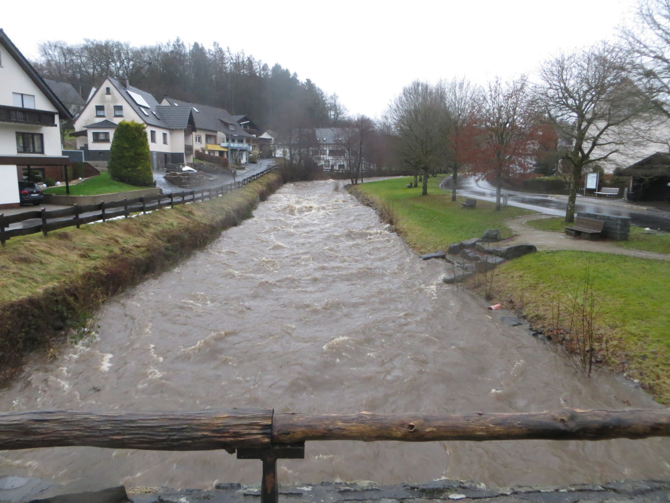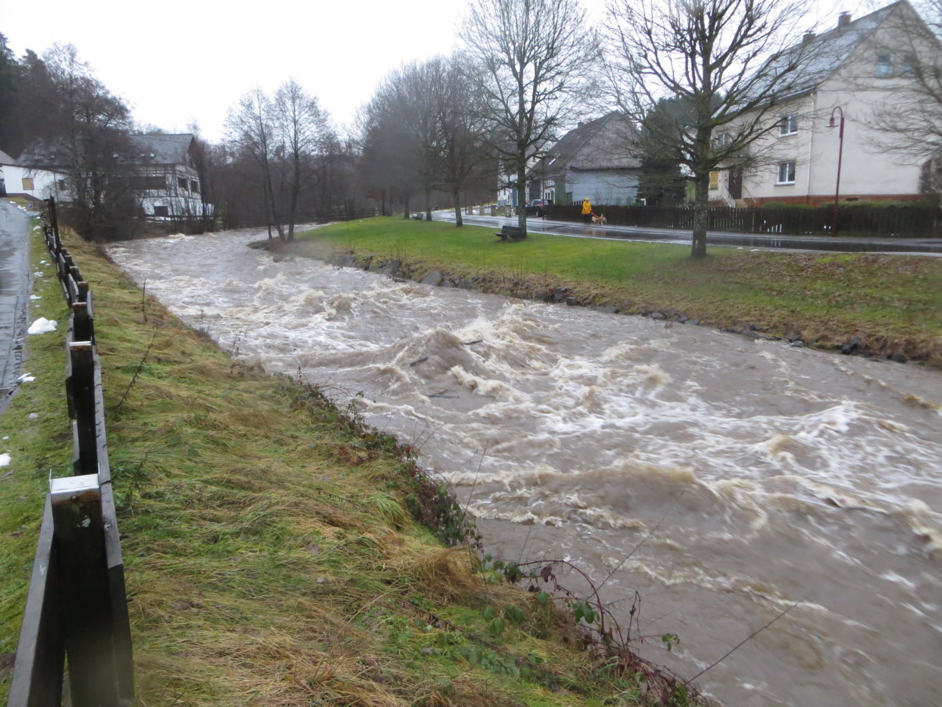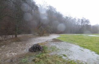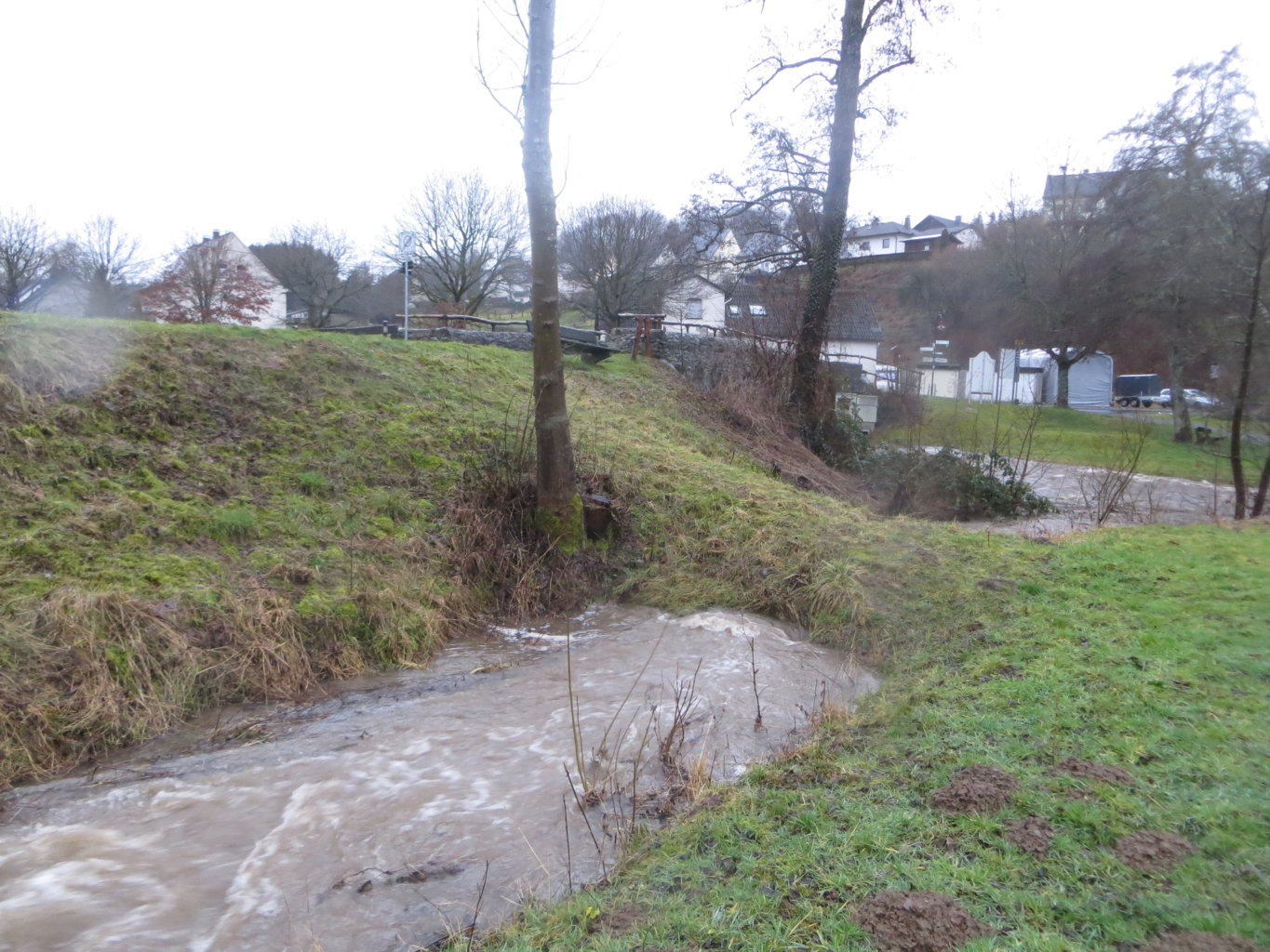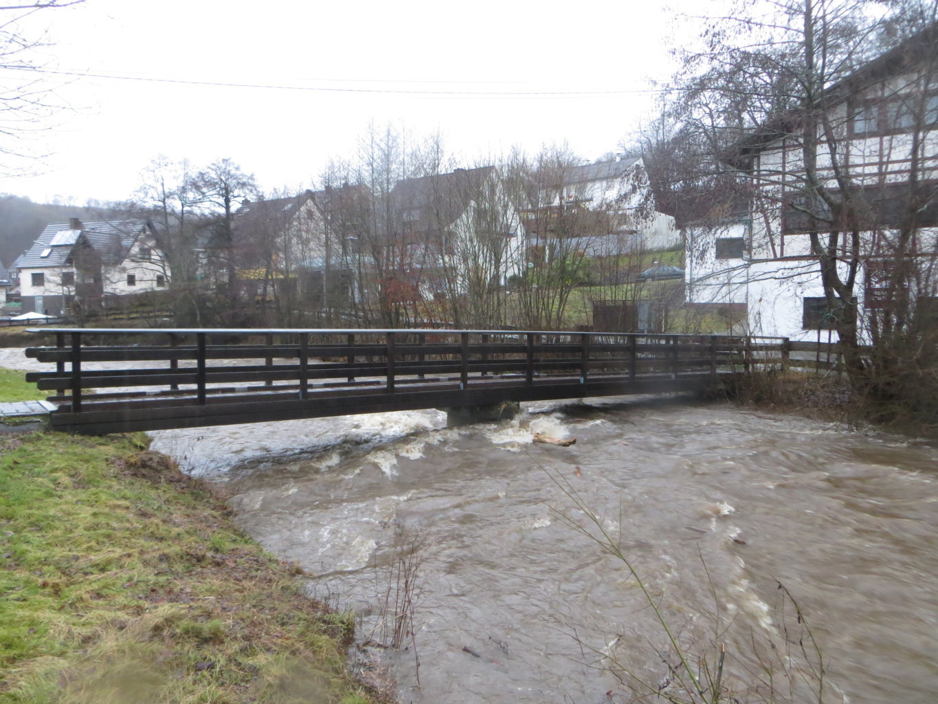 Erst der Schnee, dann das Wasser. Es war schon ein kleines Spektakel mitten in Lömbisch, als die Kleine Nister sich am 29. Januar aufmachte, ihr Bett zu verlassen. Man sah einige Lömbijer - z.B. Michael Hütter, danke, Micha! - mit Kamera in respektvollem Abstand entlang der Fluten spazieren, die immer wieder ganze Baumstämme mit sich führten.