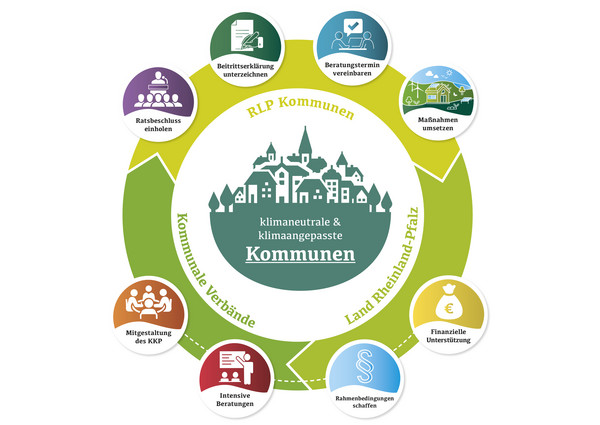 Die Landesregierung hat sich das Ziel gesetzt, in einem Korridor zwischen 2035 und 2040 in Rheinland-Pfalz Treibhausgasneutralität zu erreichen. Dieses Ziel soll und kann nur mit den Kommunen erreicht werden. Seit dem 01.03.2023 bietet das Land klimaengagierten Kommunen daher die Möglichkeit, dem „Kommunalen Klimapakt“ beizutreten.