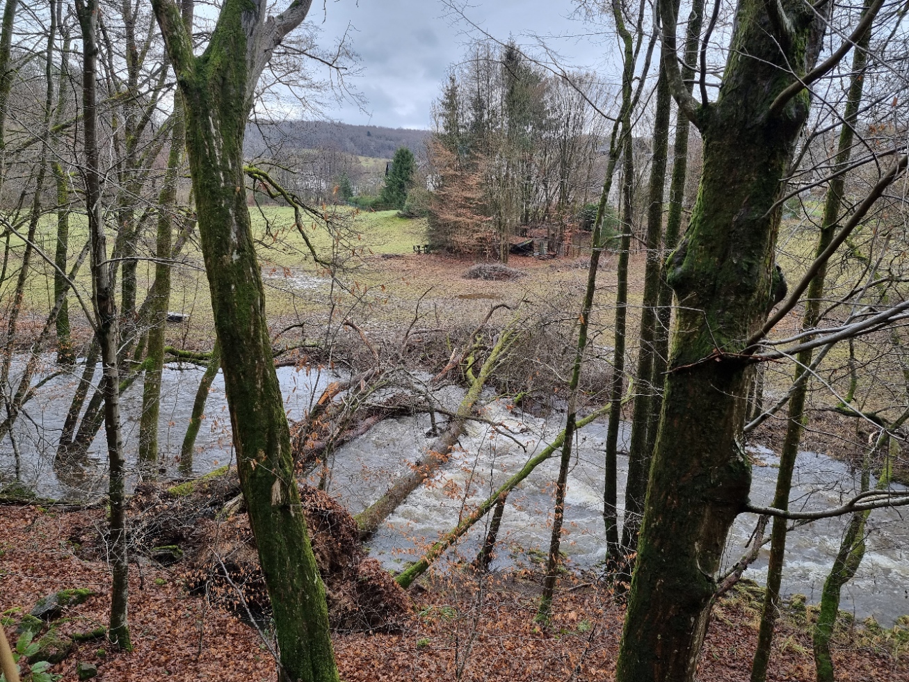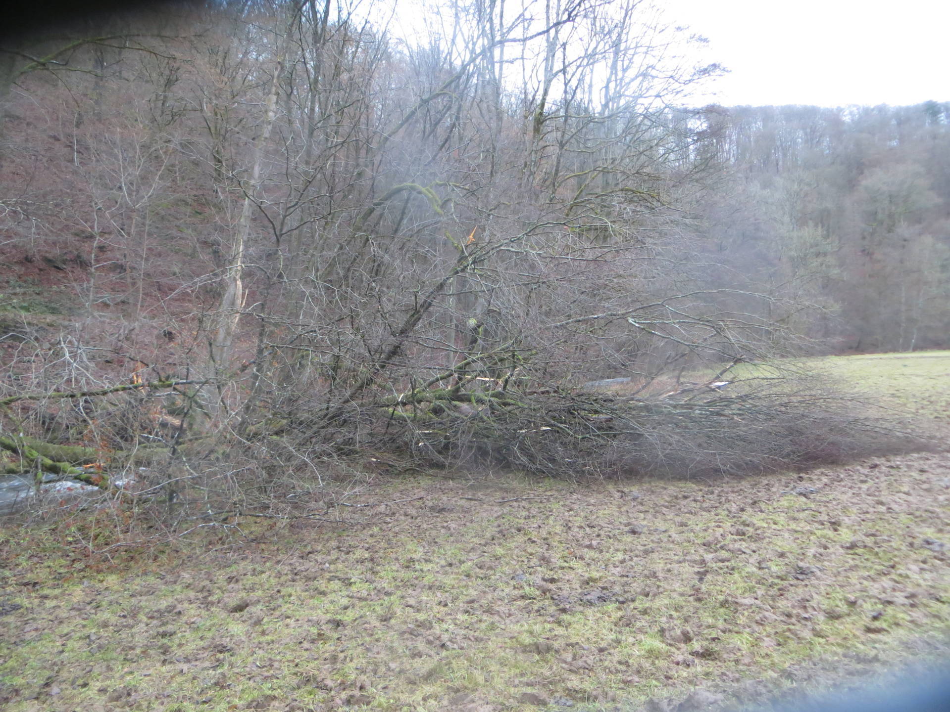 Als jemand, der viel zu Fuß rund ums DORF unterwegs ist, sind Dir sicher auch schon die Bäume aufgefallen, die rund 150 m bachaufwärts vom Jägersteg über die Nister umgefallen sind und nun den Weg am gegenüberliegenden Ufer blockieren.