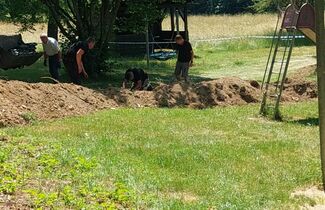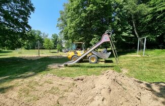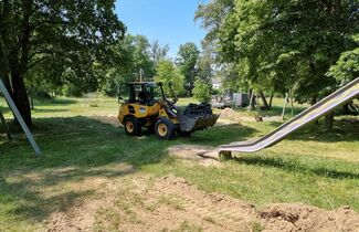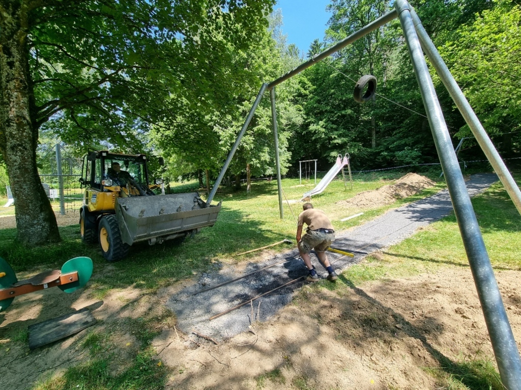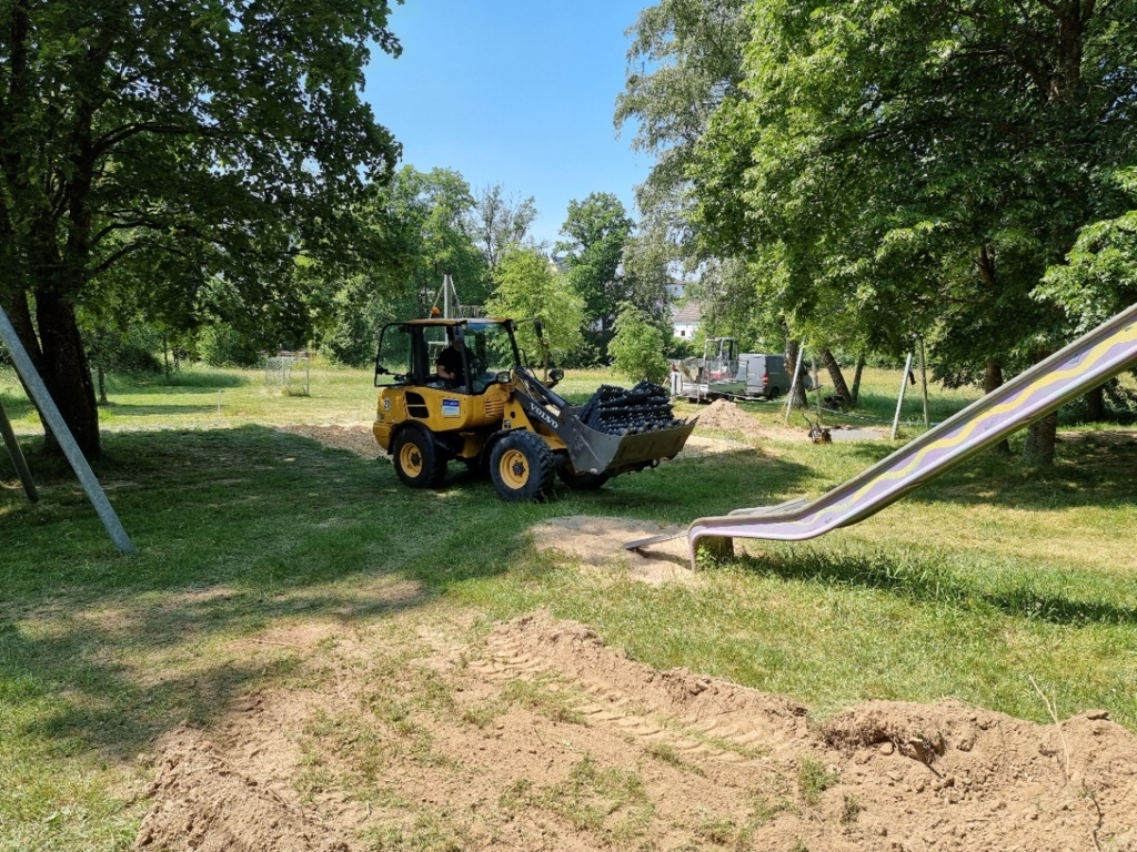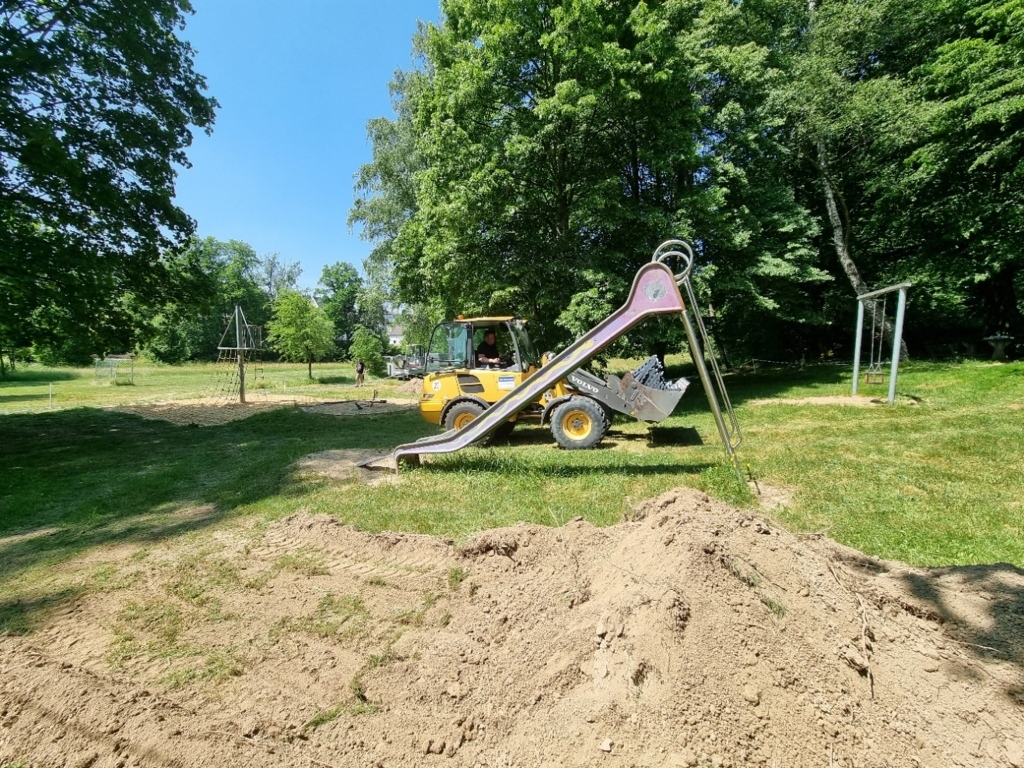 Das ging nur mit schwerem Gerät, sprich Bagger und Radlader sowie Jens (Brenner) und Marius (Hüsch), die sich hier fachmännisch ins Zeug legten. Unterstützt wurden sie von einigen großen und kleinen ehrenamtlichen Helferinnen und Helfern. Nach einem intensiven Samstag und einem entspannteren Freitagnachmittag präsentiert sich unser Mühlenspielplatz nach jetzt vermutlich so sicher wie nie zuvor. Gut investiertes Geld, auch wenn die hierfür insgesamt veranschlagten 5.000 € für Limbach alles andere als „Peanuts“ sind (und nur dank der engagierten Helfer ausreichend waren).