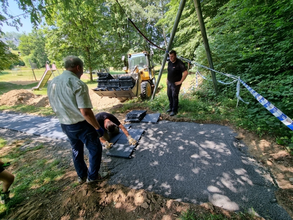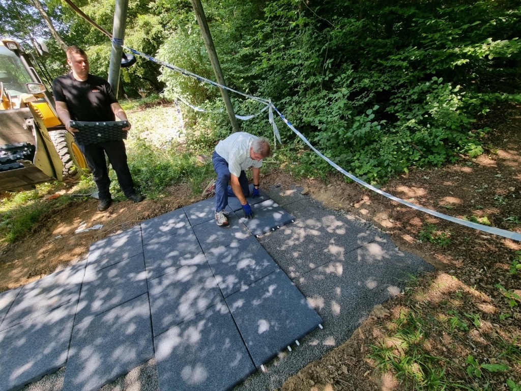 Auch beim Mühlenspielplatz wurden diesbezüglich gleich mehrere Spielgeräte moniert. Während beim Kletterturm „nur“ die Hackschnitzel erneuert werden mussten, waren etwa bei der beliebten Seilbahn dutzende Meter Gummimatten zu verlegen.