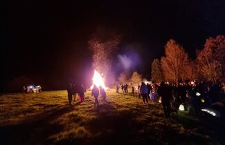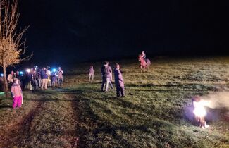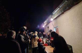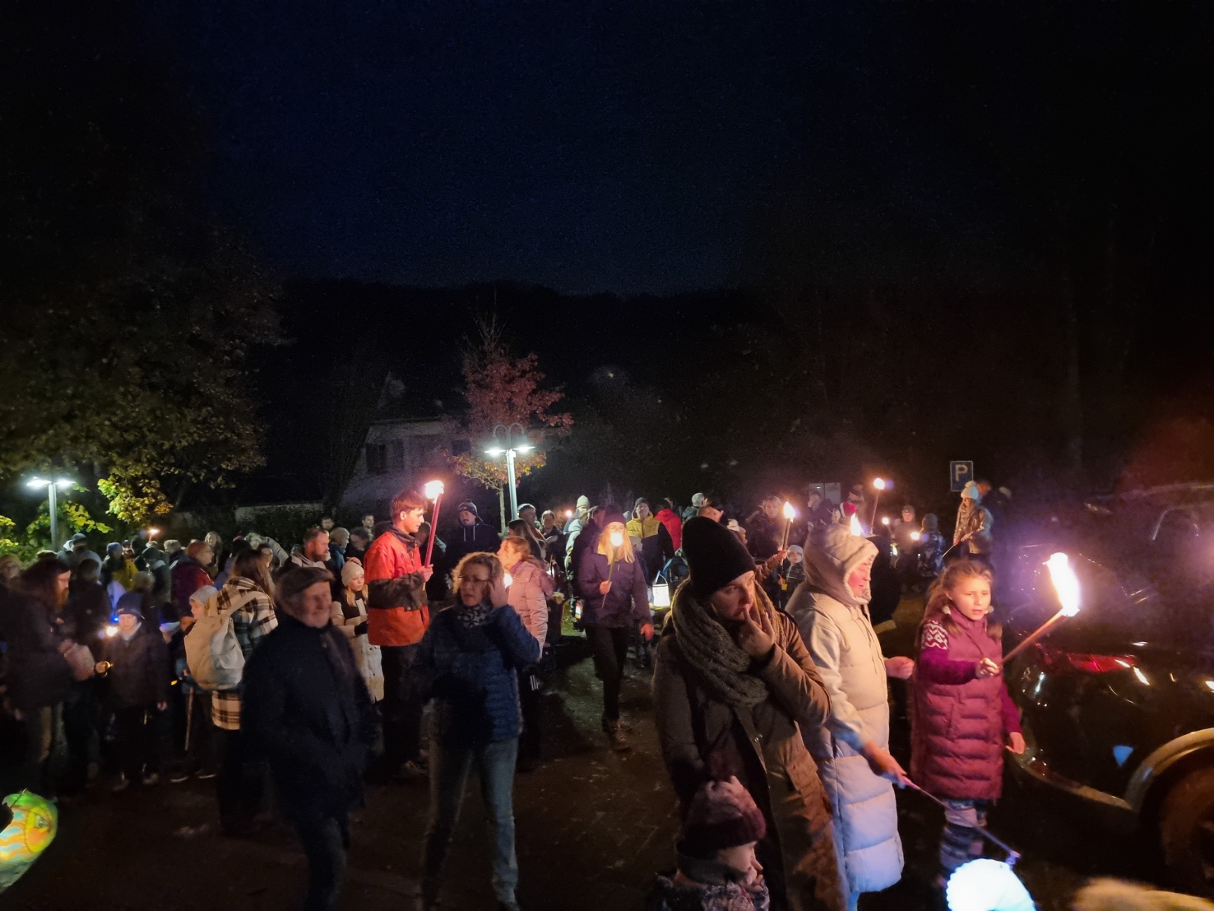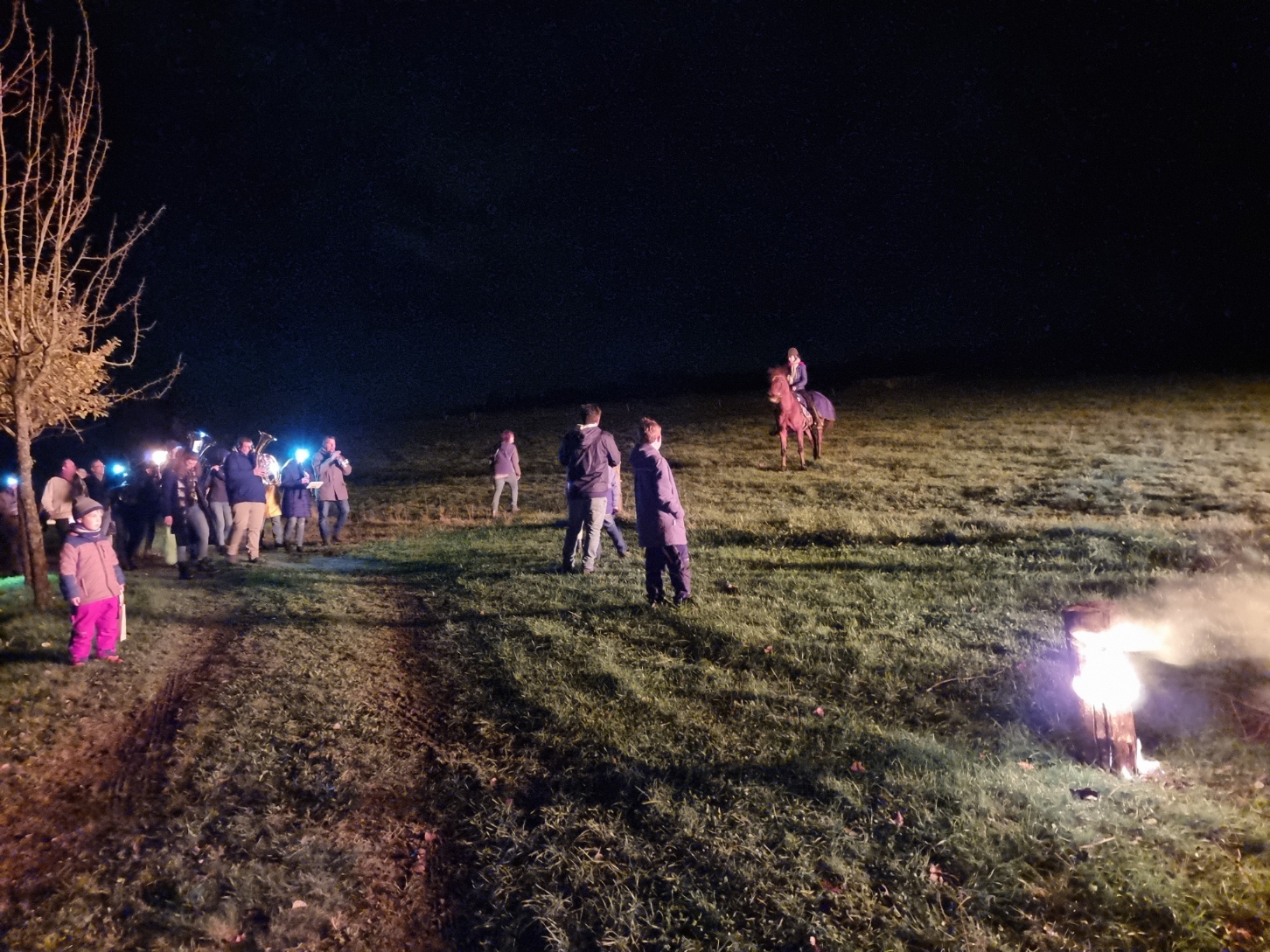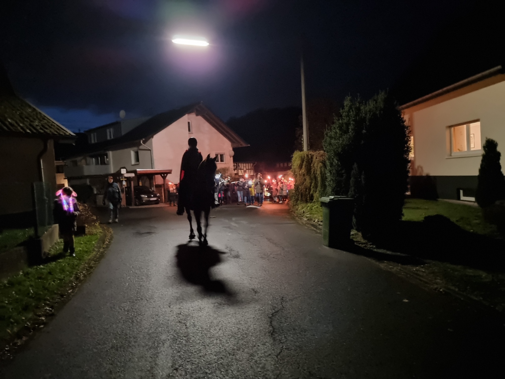Angeführt von Sankt Martin hoch zu Ross und den Limbacher Dorfmusikanten setzte sich danach dann der diesmal besonders lange Martinszug in Bewegung. Musik, Gesang und bunte Laternen erfreuten auch viele Zuschauer in den Häusern entlang des Weges, auf dem die Luckenbacher Feuerwehr für Sicherheit sorgte. Schon von weitem sah man das Martinsfeuer brennen. Nach einigen weiteren Martinsliedern am Feuer gab es – wie am Nachmittag übrigens bereits für alle Limbacher Senioren – natürlich die obligatorischen Brezeln. Bei loderndem Feuer und bester Betreuung durch die Männer vom Sportverein genossen Klein und Groß noch länger einen rundum gelungenen Martinsabend.